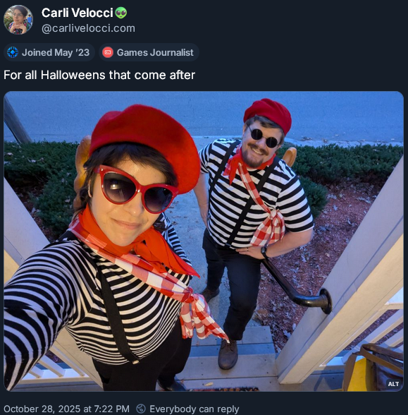The closing story last month was a look back at some cool anime. This month, I would like to highlight some fun Halloween outfits. Some of these were submissions from Bluesky friends and random posts I found on BSky and Reddit.