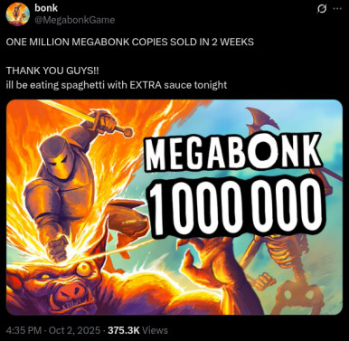 Megabonk, an indie game in an oversaturated genre of video games, specifically action roguelikes, released on _ and by October 7, it had sold over a million copies on Steam alone. (GamingOnLinux) I had wishlisted the game when I first heard of it, but I was hesitant to buy it. I still haven't bought it, but its popularity is a very good indicator that it's probably a good game. If you try it, let me know what you think.