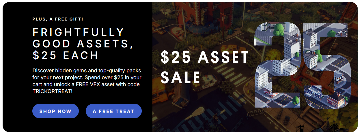 Unity Asset Store had a Halloween holiday sale that went on for a couple weeks at the end of October. The sale had a free gift for all orders over $25. The free gift was Stylized Tornado and Whirlwind Magic VFX by Piloto Studio. I'll be honest, I don't really care about this asset at all. It looks kind of bad for a Halloween sale. Unity could have offered something more in line with the season, like a pumpkin asset or fall leaves.